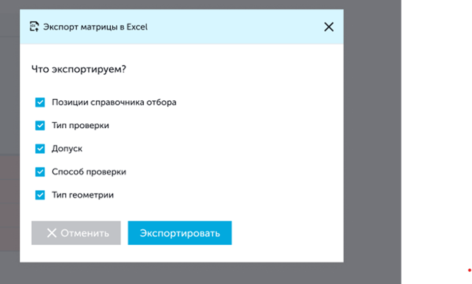 - Выбрать пункты для экспорта и нажать кнопку Экспортировать.