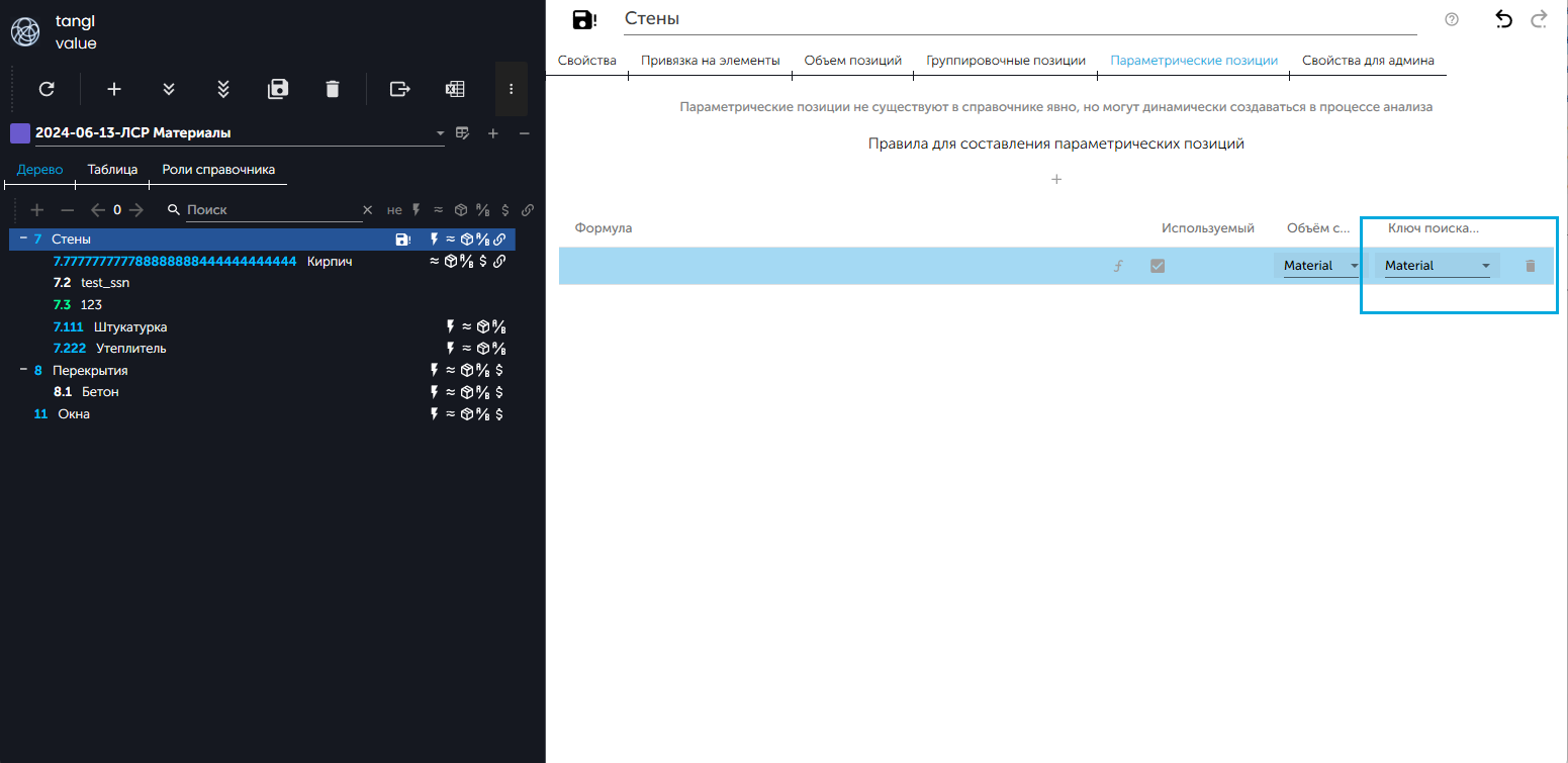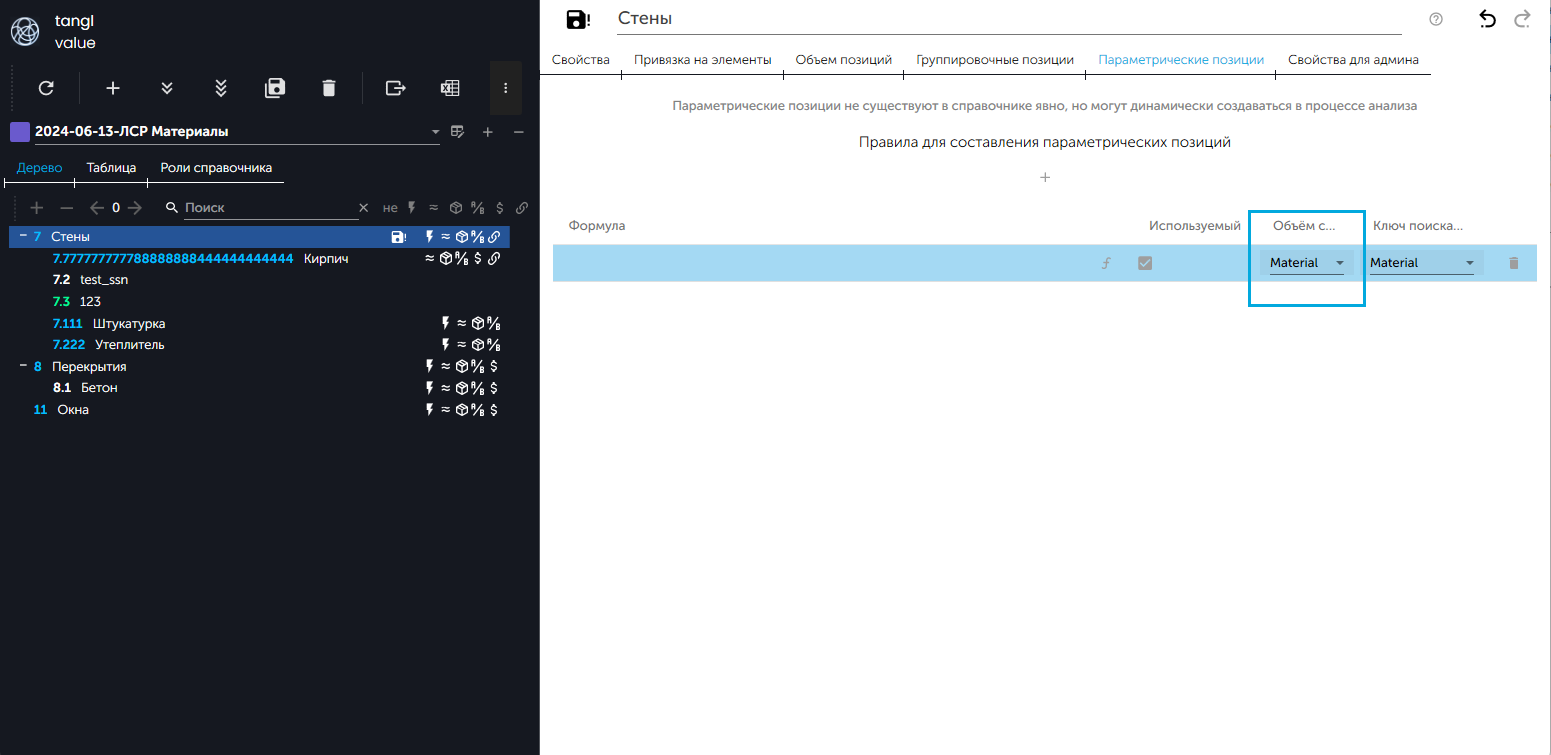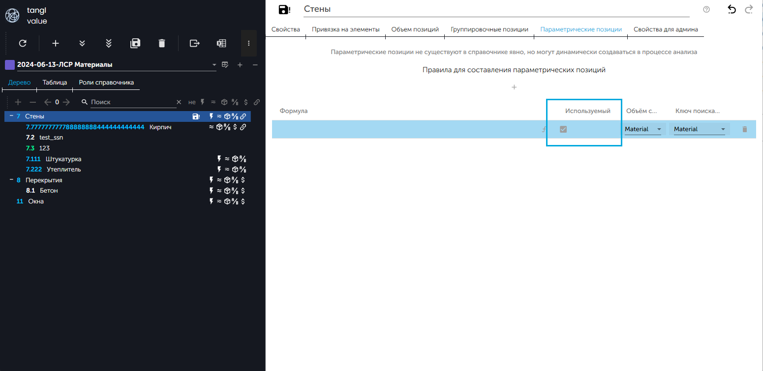 - Открыть вкладку "Параметрические позиции":