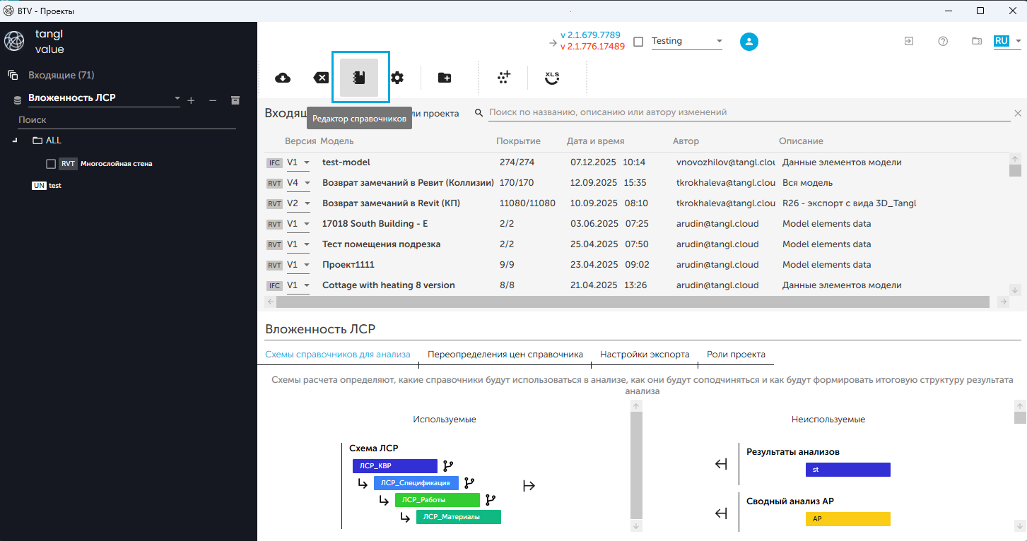 - в приложении нажать кнопку **"Редактор справочников"** в панели инструментов.