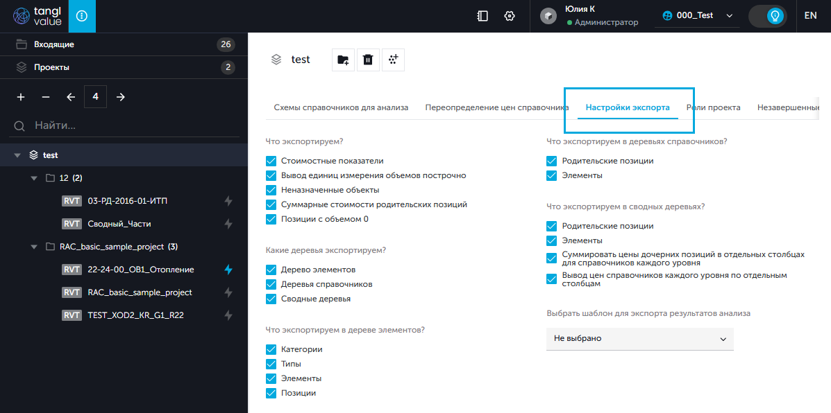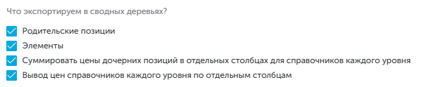 - Пункт "Родительские позиции" — экспорт родительских позиций сводных деревьев;