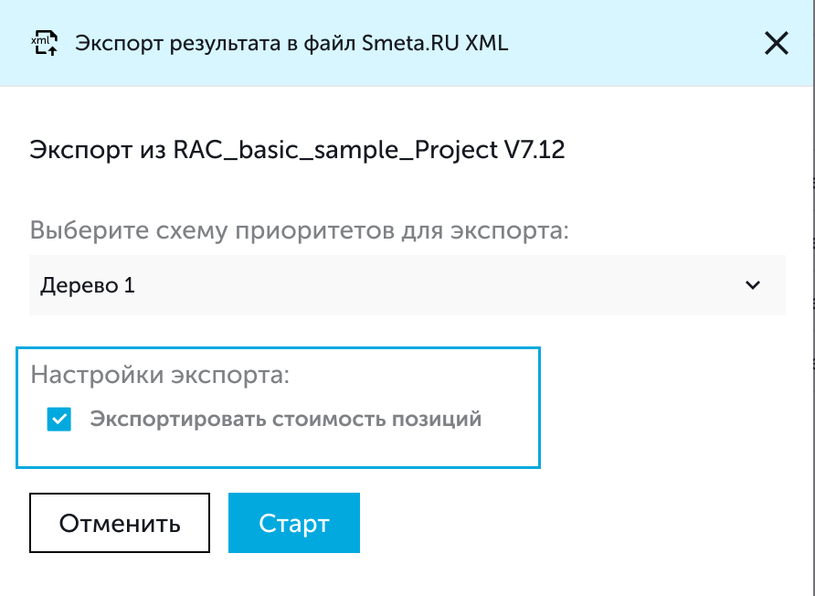- При необходимости, отметить пункт "Экспортировать стоимость позиций" в для включения в отчет стоимости позиций.