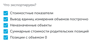 Пункт "Позиции с объемом 0" — включение в экспорт позиций с нулевым объемом