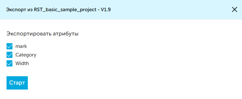 - В случае, если анализ утвержден, откроется окно, в котором нужно указать какие атрибуты будут экспортироваться и нажать на "Старт".