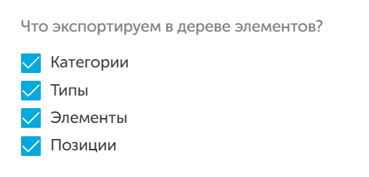 - Пункт Элементы— экспорт названия элементов в дерево элементов;