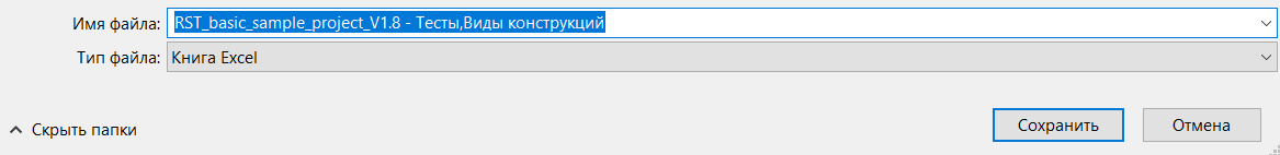- Выбрать директорию для размещения файла, при необходимости изменить наименование сохраняемого файла и нажать "Сохранить". По умолчанию файл сохраняется с наименованием, состоящим из имени модели, номера версии анализа и наименования выбранного дерева анализа.